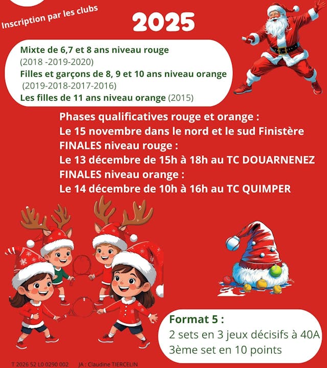 Les inscriptions à la Coupe de Noël sont à faire par les clubs jusqu'au 7 novembre, l'engagement est de 8€ par participant.