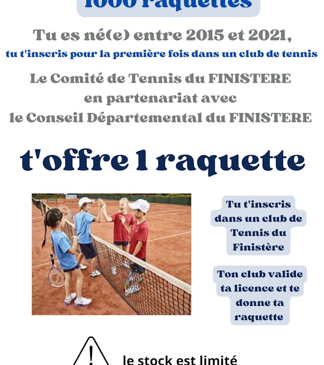 Par cette opération, le CD29 souhaite faciliter la pratique du tennis, en offrant une raquette de tennis à tous nouveaux licenciés jeunes (nés entre 2015 et 2021) dans les clubs finistériens pour la saison 2026.